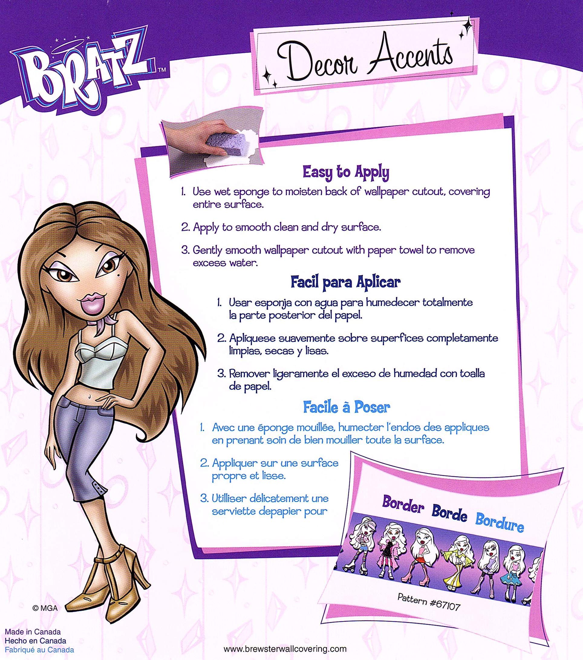 For the Bratz fan. Decorate her walls with the Bratz Retro Wallpaper Cutouts Bratz wallpaper cutouts include 4 of each 4 designs. There are 16 total pre-pasted cutouts in each package. Easy-to-use washable and dry strippable for removal, wash off the old glue by wiping down the entire wall with clean water.