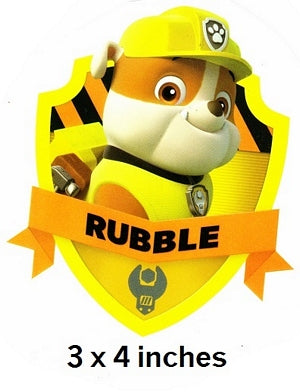 Rubble Picture Badge Wall Decal Paw Patrol Construction Pup Removable Sticker Boy Pup Peel and Stick Art 3 x 4 inches