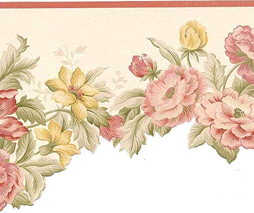 Village Wall Border 5806431 Die Cut Peony Wallpaper Traditional Dusty Rose Green Yellow Flower FloralHome Decor