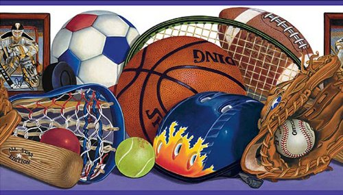 Wallpaper Warner by Brewster Blue Sports Border GU92211B