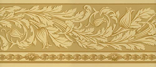 Waverly Sonoma Valley Collection Wall Border 5509442 Arts and Crafts Vine Wallpaper Mission Stylized Trailing Vine Yellow on Gold Home Decor